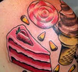 Tem gente que ama tatuagem e também ama uma boa comida. Para marcar estes amores nada melhor que uma boa, colorida e suculenta tatugem em seus corpos. Wraps, tortas, doces, pizza, picolés, ovos, milho, sorvetes e pirulitos são pequenas amostras das guloseimas do quadro Crazy Tattoos.